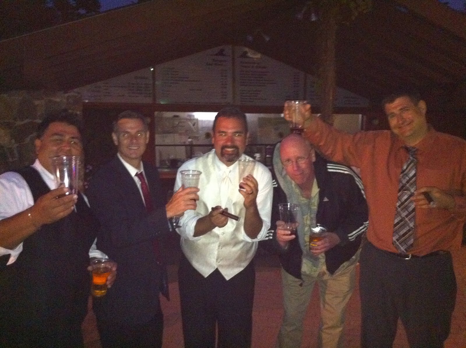 | Rob & Robert going over the wedding details, important stuff like the appropriate mix of Crown to Coke. |
